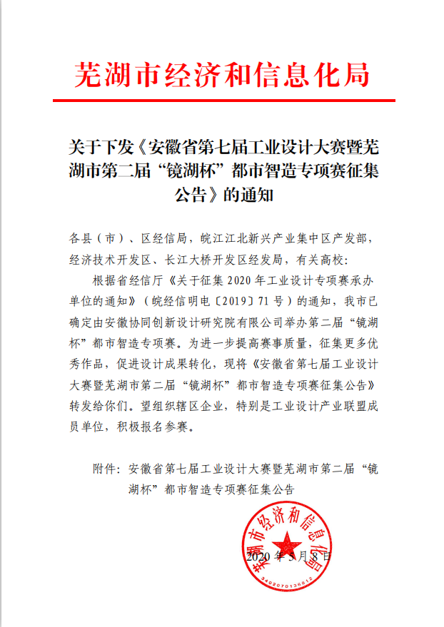 上一篇: 關于做好2020年勞動節(jié)假期安全工作的通知 下一篇: 關于征集安徽省第七屆工業(yè)設計大賽蕪湖市第二屆鏡湖杯都市智造專項賽企業(yè)命題的通知